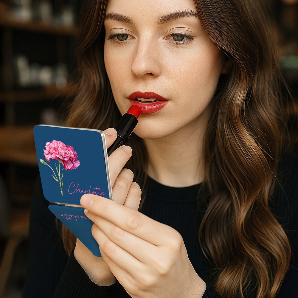 Służy jako element dekoracyjny na toaletce, a spersonalizowany kwiat narodzin i szczegóły imienia dodają odrobinę ciepła do przestrzeni kosmetycznej. Jest również idealny do dojazdów do pracy lub szkoły, pozwalając ci poprawić makijaż podczas przerwy na lunch lub przygotować się na randkę, zapewniając, że zawsze będziesz wyglądać elegancko.
