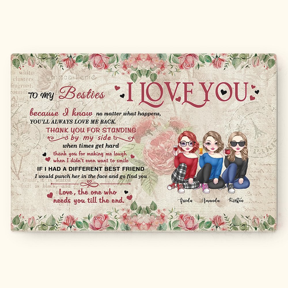 Nieoprawione zdjęcie jest pięknie wydrukowane z napisem "I Love You Because I Know No Matter What Happens, You'll Always Love Me Back", aby przypominać bliskim przyjaciołom o dobrych chwilach spędzonych razem.